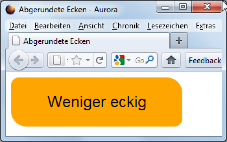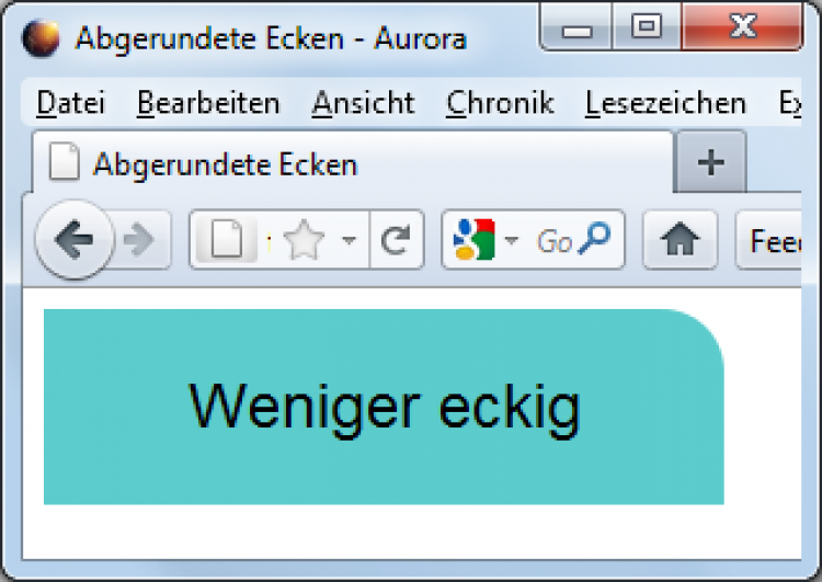 Bei diesem Beispiel wurde auf die Angabe der Möglichkeiten für Safari < 5 verzichtet, weil er mehrere durch Leerzeichen getrennte Angaben hinter -webkit-border-radius als asymmetrische Ecken interpretiert.