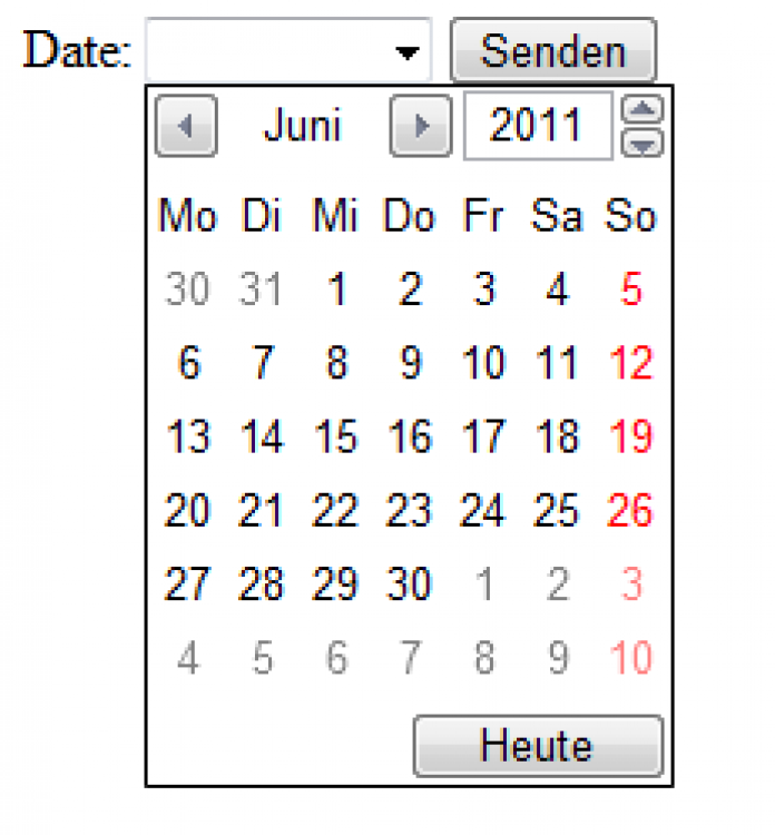 type=date - Datumauswahlfeld bei Opera