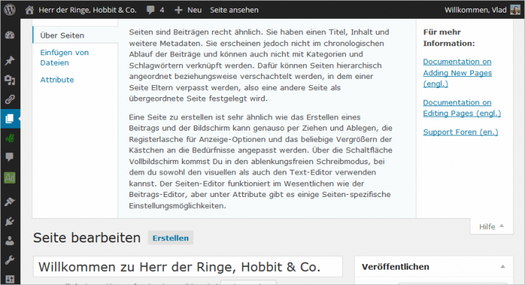 Dank der bereits genannten einfachen Installation und Anpassungsmöglichkeiten sowie den Werkzeugen für Redakteure ist WordPress ein einsteigerfreundliches System. Das ganze wird ergänzt durch ein aufgeräumtes Backend und die eingebaute kontextsensitive Hilfe: