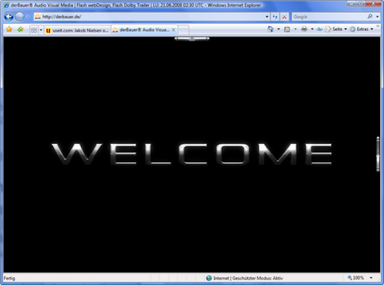 Die Macher von derbauer.de zum Beispiel versuchen, die audiovisuellen Möglichkeiten von Flash auszuloten und haben überhaupt nicht den Anspruch, auf jedem System gut auszusehen. Schwerpunkt dieser Site ist die Gestaltung. Schnelligkeit, Navigation und Zugänglichkeit sind nebensächlich. Sie müssen einen modernen Browser und ein bisschen Zeit mitbringen sowie das neueste Flash-Plugin installieren, bevor Sie die Site genießen können. Kein Flash? Keine Site: