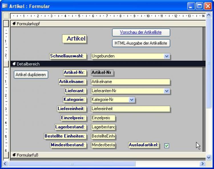 Das Frontend enthält alle weiteren Elemente - die Abfragen, Formulare, Berichte und VBA-Module, also die komplette Benutzeroberfläche samt Funktionen. Es kann auf allen Rechnern eingesetzt werden, die per Netzwerk mit dem Backend verknüpft sind.