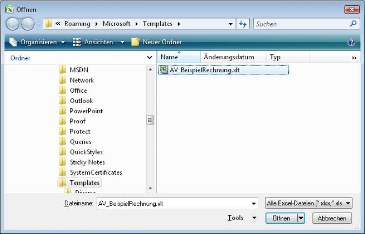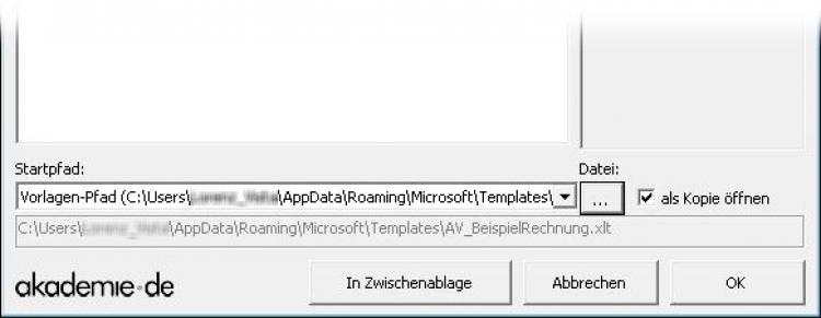 Wenn Sie auf die [...]-Schaltfläche neben der Pfadangabe klicken, öffnet sich der DateiÖffnen-Dialog genau an der Stelle, auf die der Pfad verweist, also z. B. im Vorlagenordner:
