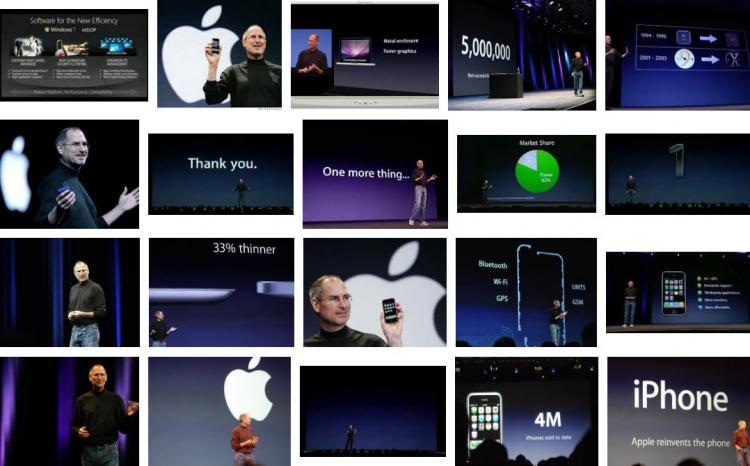 Starten Sie mal eine Bildersuche für "steve jobs präsentation" und betrachten Sie die ersten 20 Bilder, die Google dazu findet: