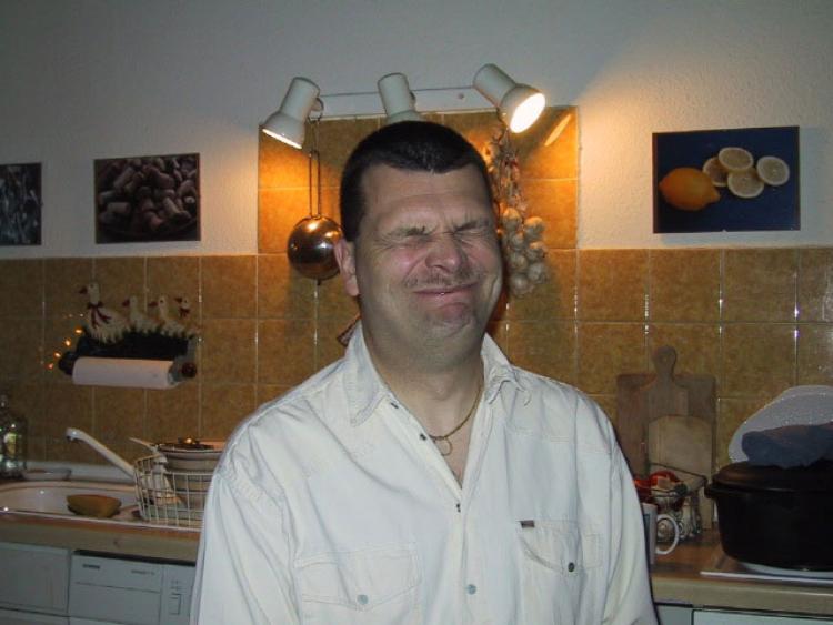 Beim Fotografieren wird die dreidimensionale Wirklichkeit auf eine Ebene reduziert. Folge: Gegenstände, die wir als weit von einander entfernt wahrnehmen, erscheinen plötzlich nebeneinander. Einer fotografierten Person wachsen Laternenmaste aus dem Kopf oder - wie hier - Knoblauchzöpfe aus den Ohren. Solche Patzer können amüsant sein - gute Porträts gelingen so nicht. Das Bild wirkt insgesamt überladen. Als Fotograf sollten Sie also nicht nur das Hauptmotiv im Blick haben, sondern auch alles, was sich drum herum und dahinter befindet.