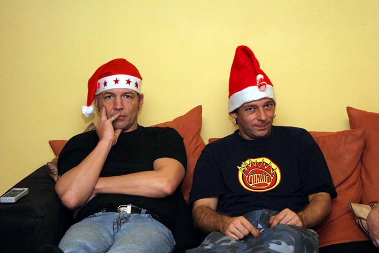 Beispiel 3: In einem normalen Haushalt lassen sich Hintergründe nicht komplett wegzaubern. Hier sind aber nur noch wenige störende Elemente im Bild. Die "zwei lustigen Drei" könnte man vor einem Weihnachtsbaum (Requisite) posieren lassen. Um eine völlig neutrale Umgebung zu schaffen benötigt man eine Studio-ähnliche Umgebung, am besten einen großen, neutralen Hintergrundkarton.