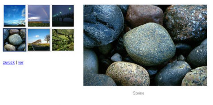 Das nächste Beispiel zum Einbinden von Bildern mit jQuery-Plugins, das wir vorstellen wollen, ist die "Galleria". Hier werden kleine Vorschaubilder seitlich angeordnet. Klickt man eines davon an, wird es daneben vergrößert angezeigt.