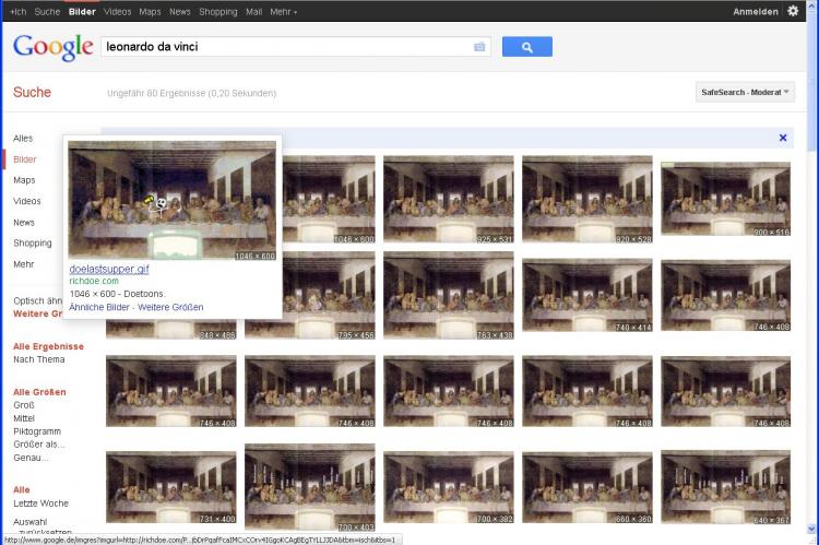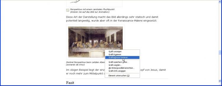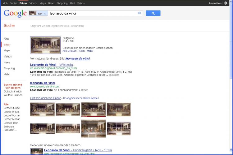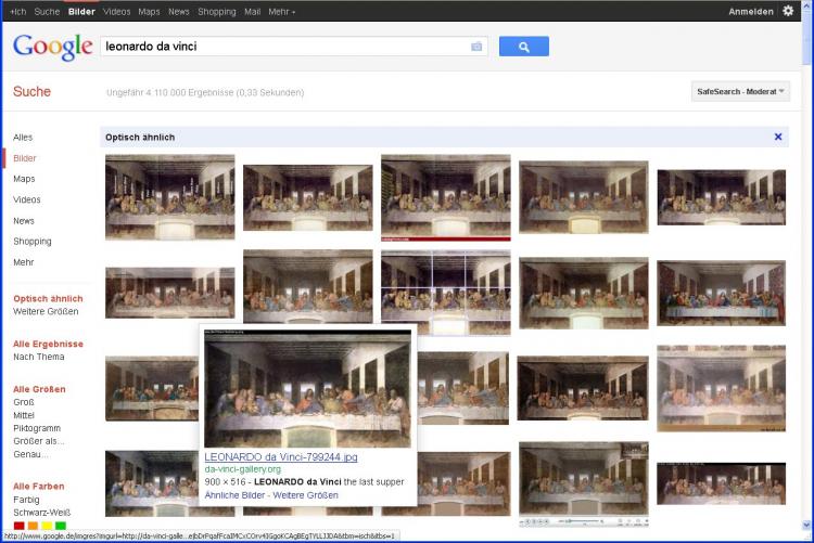 Haben Sie im Internet ein Bild entdeckt, welches Sie einfach nur in einer besseren Qualität suchen, geht das ebenfalls mit der Google-Bildersuche. Vielleicht wollen Sie auch nur wissen, von wem ein Bild ist oder wie es heißt. Zum Testen nehme ich mal Leonardo da Vincis "Letztes Abendmahl", wie ich es im Beitrag "Perspektivisch zeichnen" als Beispiel einer Zentralperspektive benutzt habe.