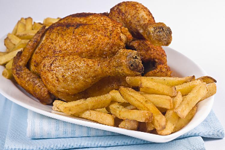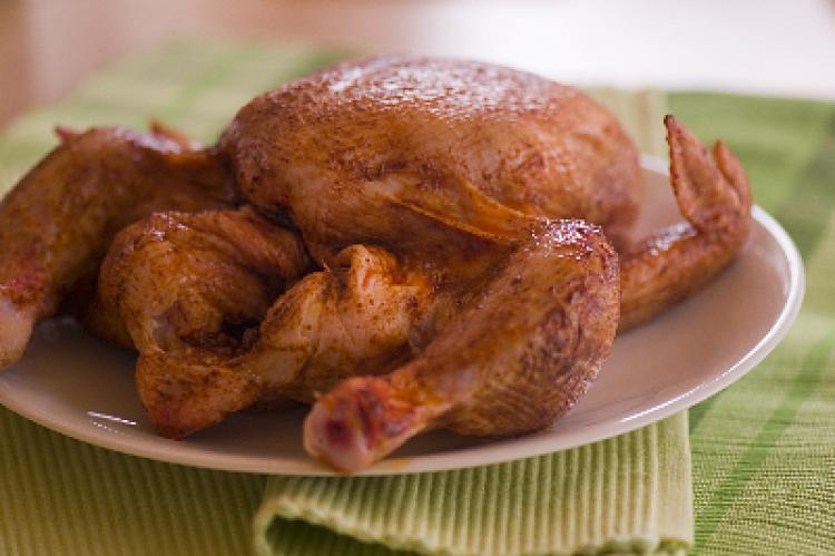 Das Hähnchen muss eine goldgelbe Farbe haben, mit einer gleichmäßigen Bräunung.
