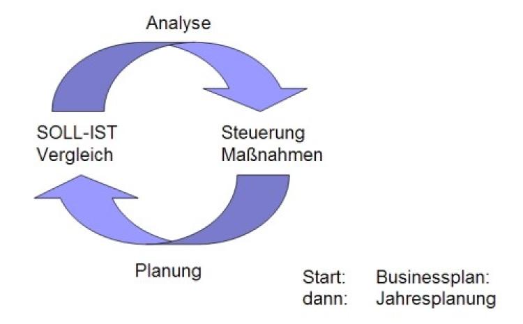 Und dies nicht nur mit Werten, die aus der Vergangenheit stammen (Bilanzen, Abschlüsse), sondern Controlling schlägt heute anhand aktueller Analysen die Brücke zwischen dem Ist (= Vergangenheitszahlen) und dem Plan (= Blick auf die Zukunft).