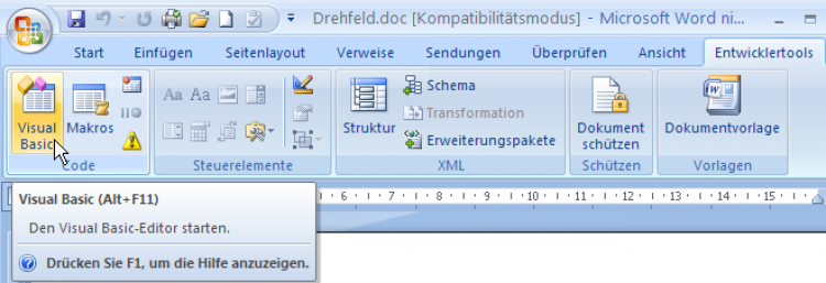So wechseln Sie in Word 2007 in den VBA-Editor.