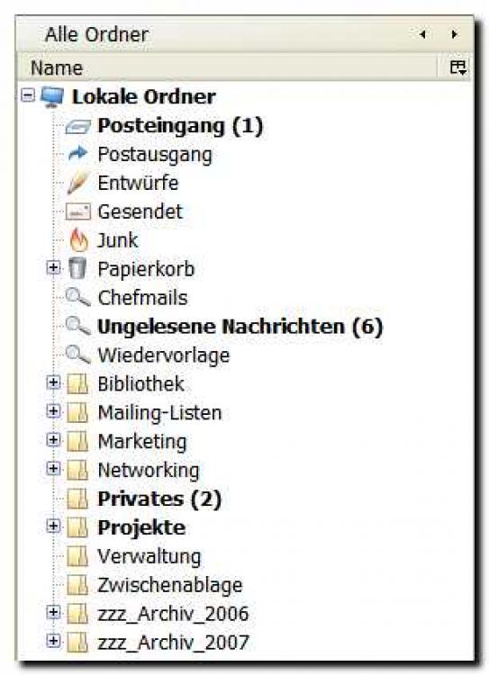 Ordner mit ungelesenen E-Mails erscheinen fett markiert (hier in Thunderbird)