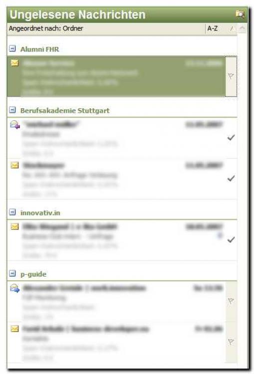 Die gruppierte Darstellung der noch ungelesenen E-Mails in Outlook