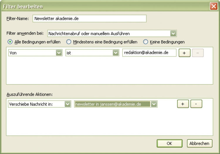 Ähnlich leistungsfähig, aber mit ein paar Schritten mehr, können Sie automatische Regeln in Mozilla Thunderbird anlegen.