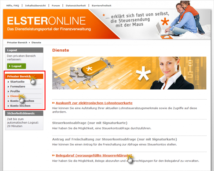 Tipp: Ausführliche (Hochglanz-)Informationen zur vorausgefüllten Steuererklärung und zur Funktionsweise des Belegabrufs finden Sie auf der Elster-Website.
