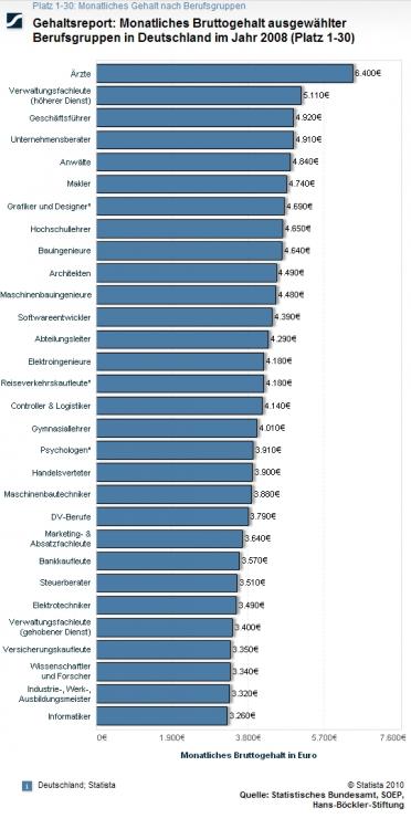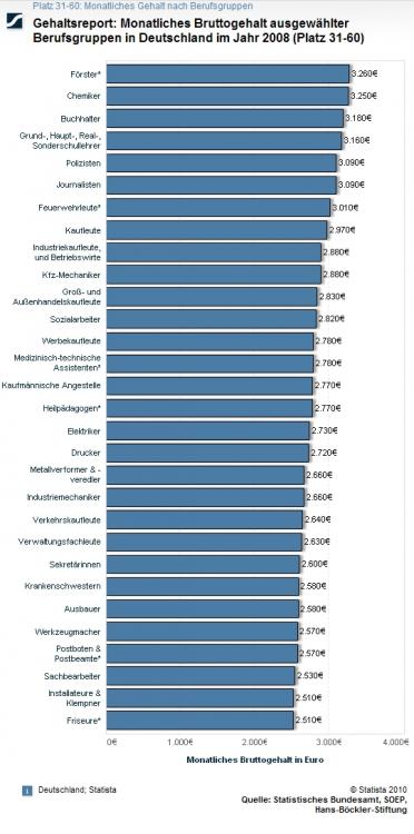 Die Originalstatistiken finden Sie bei Statista.de: "Monatliches Bruttogehalt ausgewählter Berufsgruppen in Deutschland - Platz 1-30, Platz 31-60, Platz 31-60.
