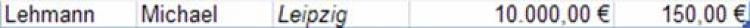 Lehmann, Michael, Leipzig, 10.000,00 und drücken Sie als Eingabeende in jeder Zelle <Tab> oder <Pfeil nach rechts>.