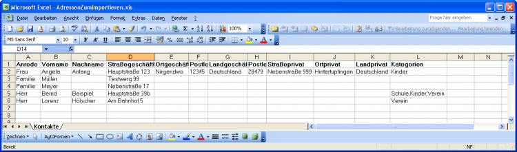 Es handelt sich um eine ganz normale Excel-Datei mit bestimmten Überschriften. Bevor Sie diese importieren können, muss diese allerdings in Excel geschlossen werden, weil der Zugriff sonst blockiert ist.