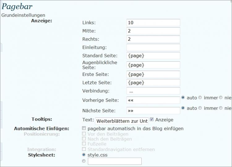 Einstellungen von Pagebar 2