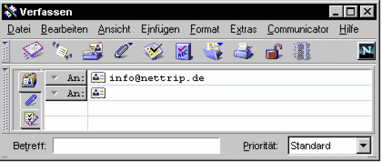 Beim Klicken auf den "mailto"-Link öffnet sich standardmäßig das Mail-Fenster des Browsers. Automatisch wird die E-Mail-Adresse im Feld "Mail To:" eingetragen.