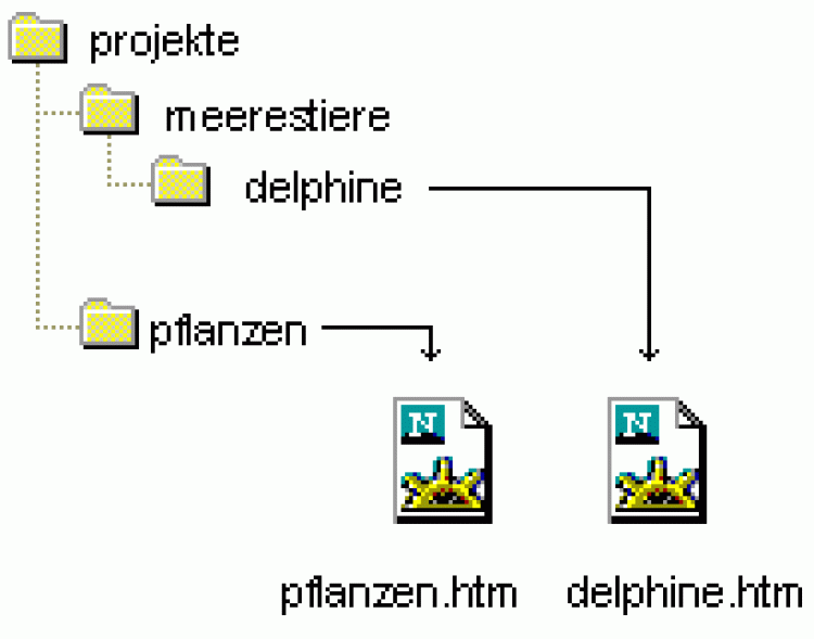 In der Datei delphin.htm wird ein Link auf tiere.htm gesetzt...
