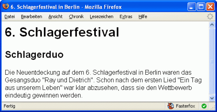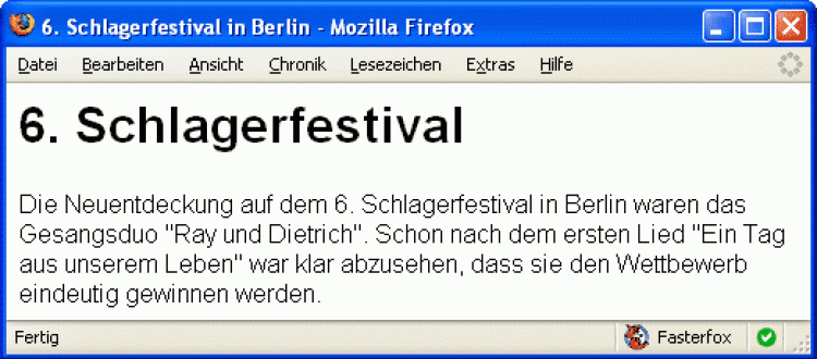 Achtung: Denken Sie daran, die Sonderzeichen zu maskieren!Speichern Sie die Datei unter dem Namen schlager1.html.