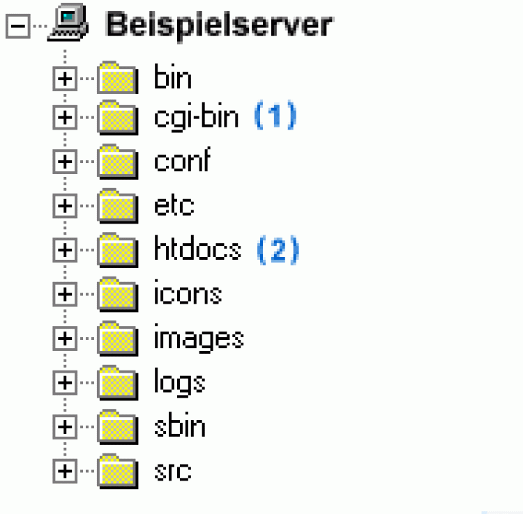 Voraussetzung für das Funktionieren eines CGI-Scripts ist ein dafür konfigurierter Web-Server. Die nächste Abbildung zeigt ein Beispiel für die Verzeichnisstruktur eines Web-Servers: