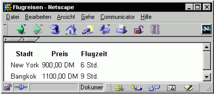Der Text in der Überschrift wird in der Zelle zentriert und automatisch vom Browser hervorgehoben (meist fett dargestellt). |