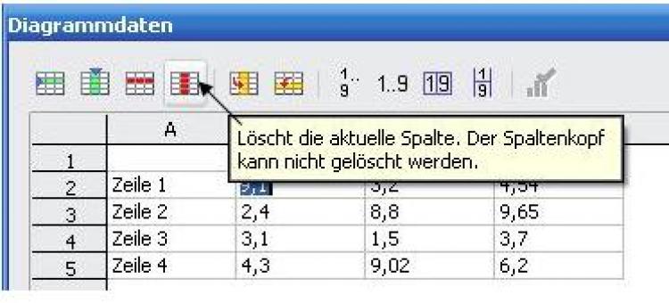 Über die Symbole bearbeiten Sie die Diagrammdaten