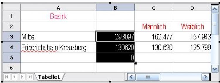 Im obigen Beispiel könnten Sie das Arbeitsblatt weiter ausfüllen und wie in OpenOffice.org Calc bearbeiten.