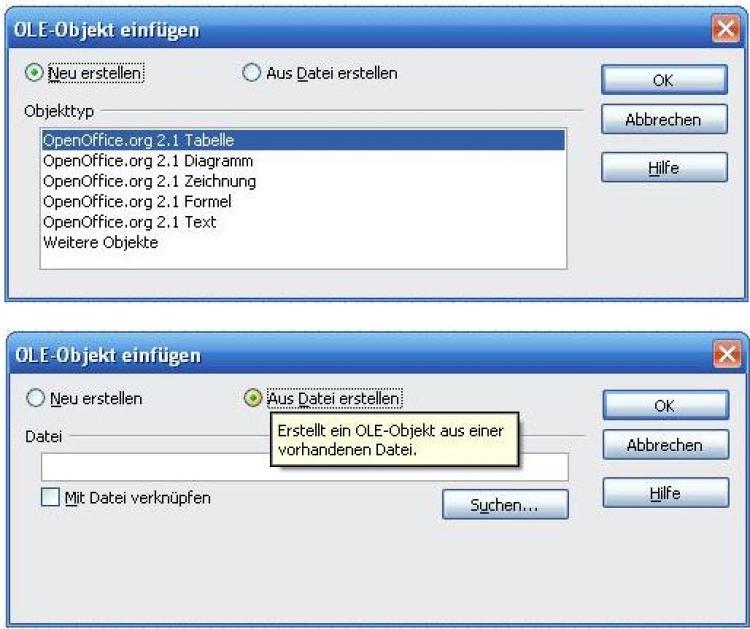 Wenn Sie beim "Einfügen" - "Objekt" - "OLE-Objekt" in der Dialogbox Objekt einfügen gleich die Option Aus Datei erstellen wählen, können Sie über Durchsuchen eine bereits bestehende Datei auf Ihrem PC (oder Intranet) suchen, einfügen und den gewünschten Ausschnitt anzeigen.