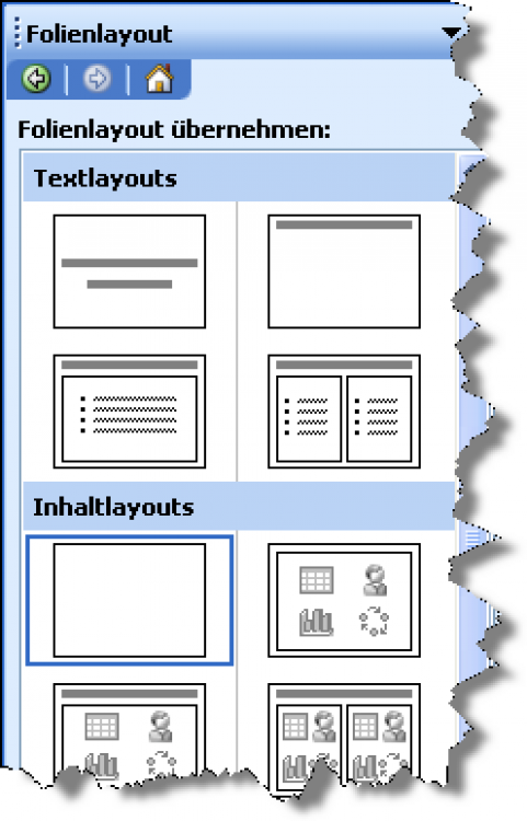 Lassen Sie sich mit Format/Folienlayout den entsprechenden Arbeitsbereich anzeigen: