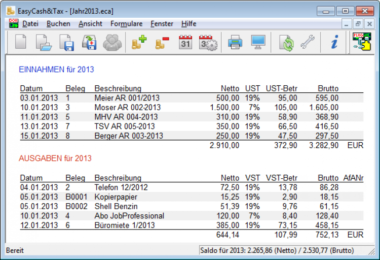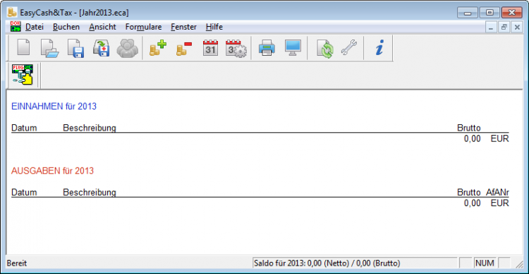 Das Programmfenster von Easy Cash&Tax