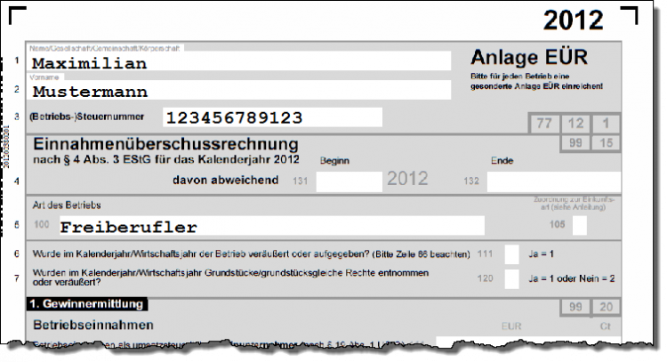 Das EÜR-Formular für das Jahr 2012