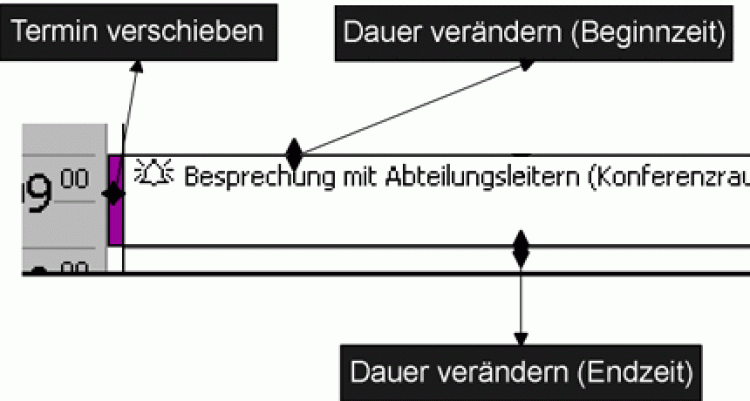 An diesen Stellen kann man ziehen, um den Termin zu ändern.