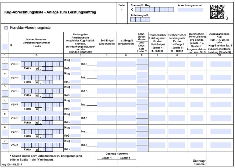 So sehen die Abrechnungslisten für das Kurzarbeitergeld aus.