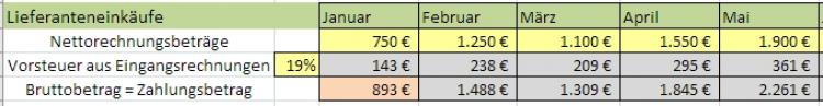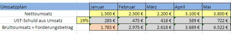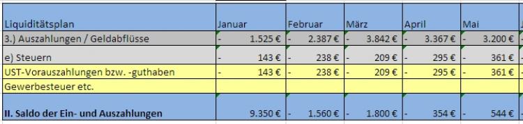 Im untersten Bereich wird die Umsatzsteuerschuld aus der Planung der Umsätze und Eingangsrechnungen ausgegeben: