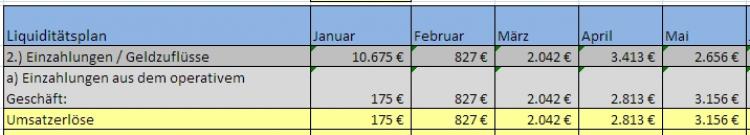 Für die Einzahlungen aus Umsatz nutzen Sie das Tabellenblatt "Umsatz Plandaten".