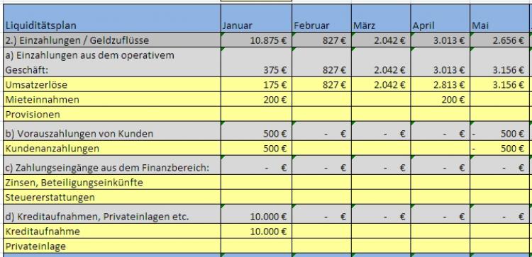 Die Vorlage überträgt die Werte in den Liquiditätsplan.
