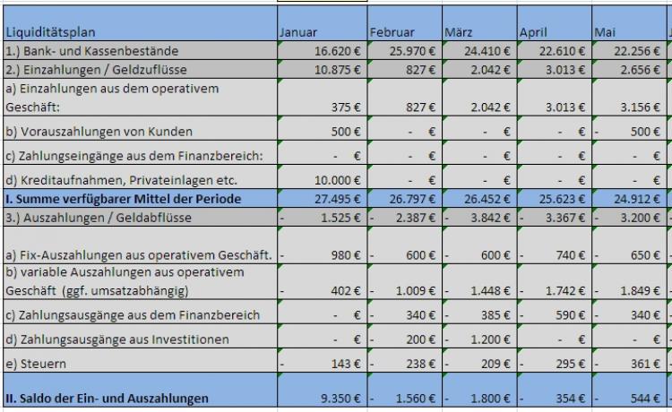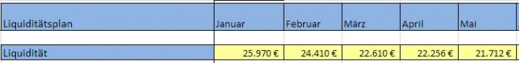Die fertige Liquiditätsplanung im Beispiel liefert das folgende Bild: