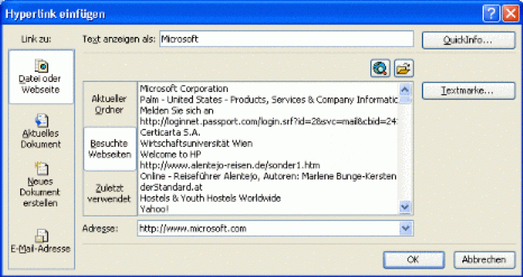 Der schnell erstellte Hyperlink - mit dem Dialogfenster Hyperlink einfügen