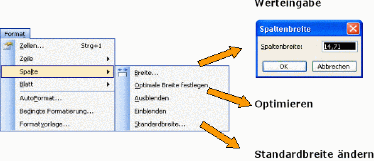 Auch über Menü Format kann die Spaltenbreite (oder Zeilenhöhe) geändert werden