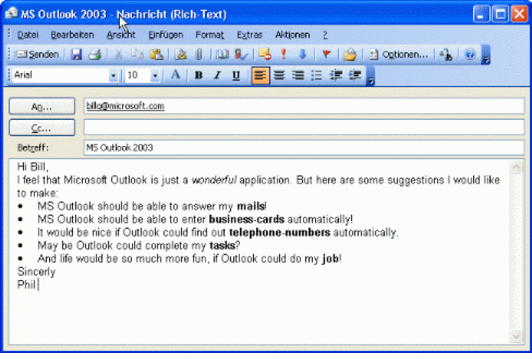 Im Allgemeinen versteht der Empfänger nur die Formate HTML oder Nur-Text. Rich-Text wird nur von MS Outlook bzw. Outlook Express verstanden.