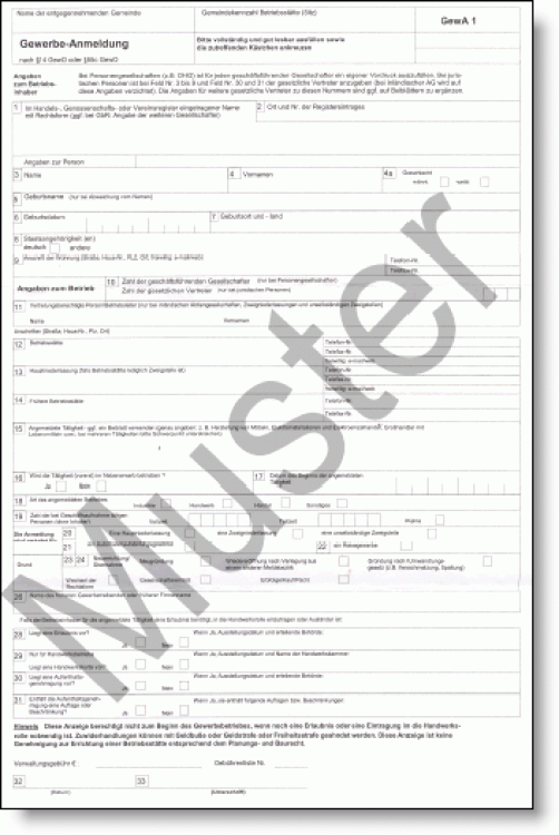 Zurück zur Praxis: Falls Sie ein Gewerbe anmelden müssen, tragen Sie im Vordruck "Gewerbeanmeldung" im Wesentlichen die folgenden Angaben ein: