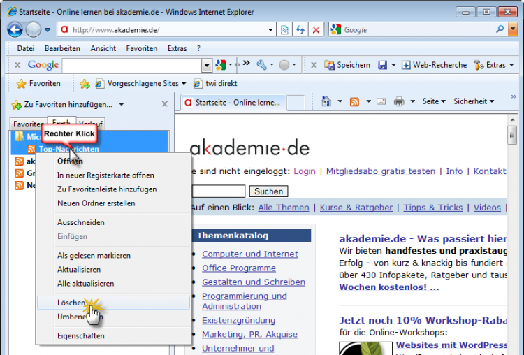 So löschen Sie ungewollte RSS-Abos im Internet Explorer