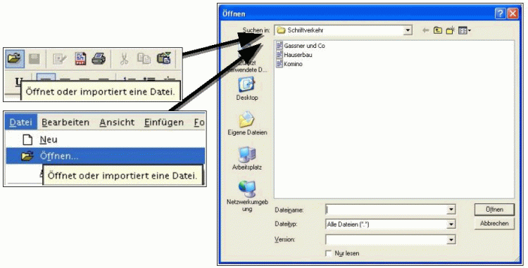 Öffnen von Dateien über das Dialogfenster Öffnen