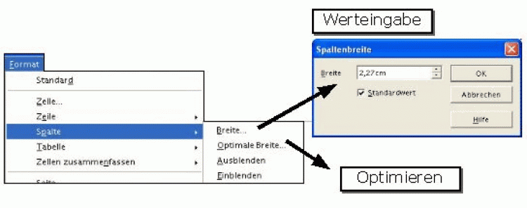Auch über Menü Format kann die Spaltenbreite (oder Zeilenhöhe) geändert werden