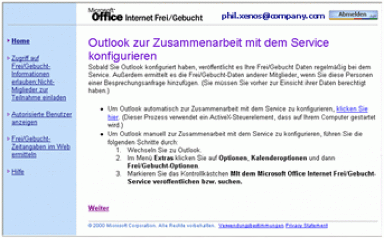 So richten Sie den MS Office Internet-Frei/Gebucht-Service ein und veröffentlichen Ihre Verfügbarkeitszeiten: