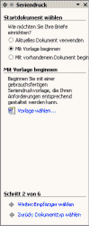Im zweiten Schritt können Sie auf vorhandene Serienbrief-Dokumente bzw. Dokument-Vorlagen zurückgreifen oder mit einer leeren Datei beginnen.