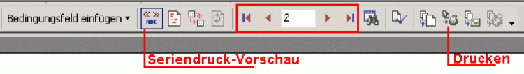 Seriendruck-Vorschau, Datensatz-Schalter und Druckbefehl