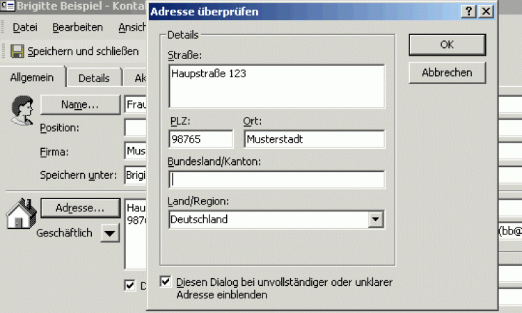 Die Vielzahl der Eintragsmöglichkeiten bei Outlook offenbart aber auch, wie wichtig es ist, bereits beim Erfassen von Kontaktinformationen sorgfältig und konsequent zu arbeiten. So sollten Sie etwa darauf achten, dass Sie Adressen von Geschäftspartner auch wirklich unter "Adresse" - "Geschäftlich" ablegen (und nicht etwa unter "Privat").